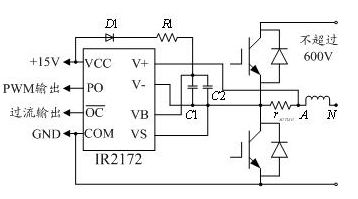 集成電路IR2171/2172的帶寬較窄,典型值為15KHz。PWM輸出,與微控制器連接導(dǎo)致頻繁的中斷。在小功率驅(qū)動電路中,和高壓浮動MOS柵極集成電路共同使用性價(jià)比較高;