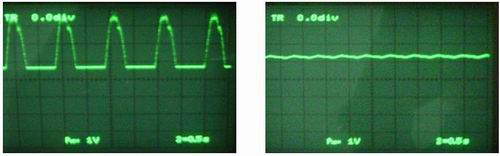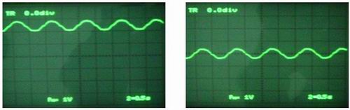 圖4 交流成分正半波放大后的波形 圖5 將圖4的波形濾波處理后的結(jié)果