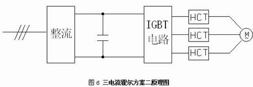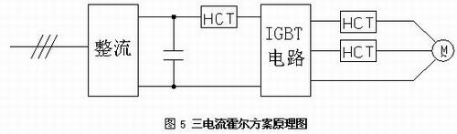 霍爾電流傳感器是應(yīng)用霍爾效應(yīng)原理的新一代電流傳感器,能在電隔離條件下測量直流、交流、脈動以及各種不規(guī)則波形的電流。由于閉環(huán)霍爾電流傳感器的響應(yīng)時間小于 ,因此出現(xiàn)短路時,霍爾輸出電流信號經(jīng)采樣電阻轉(zhuǎn)換成電壓信號及時送到DSP,在IGBT 10us短路安全時間內(nèi)封鎖PWM驅(qū)動信號輸出,使IGBT得到可靠的保護。當然,同電壓霍爾一樣,必須提供電流霍爾正常工作所要求的電源電壓,且電源電壓誤差不超過±5%。同時選擇電流霍爾元件時,線性范圍必須滿足IGBT最大工作電流的范圍。三電流霍爾方案中,直流側(cè)霍爾用來檢測橋臂直通故障,對響應(yīng)指標有較高要求,輸出側(cè)兩相電流檢測用來完成死區(qū)補償、無跳閘電流閉環(huán)、過載、過流電流檢測。圖6.中的三霍爾方案二去掉了直流側(cè)霍爾,直通保護通過智能驅(qū)動光耦來保證,輸出側(cè)三霍爾除實現(xiàn)圖5中兩霍爾功能外,還可進行輸出缺相檢測。