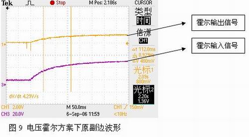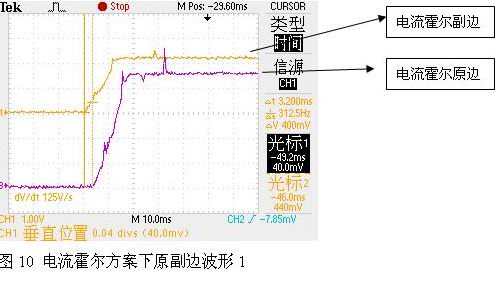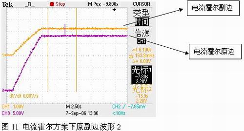 上電后,觀察加速過程中電流霍爾原副邊信號波形如圖11所示: