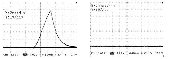 (a)單個信號波形 (b)連續(xù)信號波形 圖3 輸出電流(電壓)反饋信號波形 Figure3 The waveform of output current(voltage) feedback signal (a)single waveform (b)continuous signal waveform 圖(a)為單個周期的波形,輸出峰值為5.0V,對應(yīng)滿量程1250A,波形過渡過程光滑,無干擾信號;圖(b)為連續(xù)兩個周期的輸出波形,從上圖可以看出,開關(guān)管Q1的=5ms,=2200ms,即電源每隔2.2秒輸出一個形如圖(a)的波形,目標(biāo)峰值將隨給定值的變化而線性變化。 5.結(jié)論 采用高精度電壓/電流LEM模塊為基準(zhǔn)源的雙通道傳感器測試電源可以用來測試電壓和電流傳感器,它具有結(jié)構(gòu)簡單、精度高、調(diào)節(jié)方便、量程寬、動態(tài)特性好、線性度高及通訊方便等優(yōu)點,是一種具有良好應(yīng)用前景的測試計量設(shè)備。 參考文獻: 1.牟民生. 互感器基礎(chǔ)知識[J]. 農(nóng)村電工,2000(4):43~44 2.陳離,秦清俊. 電路與電機技術(shù)[M]. 北京:機械工業(yè)出版社,1994 3.北京萊姆電子有限公司. LEM電壓電流選型手冊[EB]. http://www.lem.com.cn/news/tech.asp,2005 通訊作者:汪殿龍 通訊地址:北京航空航天大學(xué)702 郵政編碼:100083 電 話:010-66405407 13439103939 E-mail: U C3875@163.com