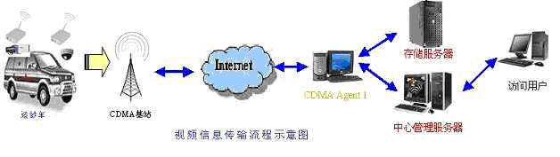 CDMA/EDGE無線網絡視頻服務器 把接收到的視頻信號經過壓縮編碼轉換為數字信號經CDMA/EDGE1X網絡實時傳至中心監控中心管理服務器上。