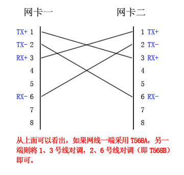 2,為什么要用到交叉線 這個問題還是要回到網卡接口的電氣定義上去,即: TX+ --- RX+ TX- --- RX- RX+ --- TX+ RX- --- TX-