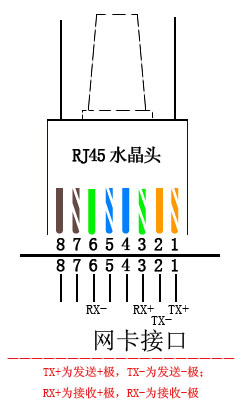 TX+ TX- RX+ RX- 白橙、橙;白藍、藍;白綠、綠;白棕、棕