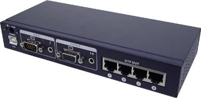 UTP804AT有一組VGA信號+音頻信號輸入口,一組VGA信號+音頻信號輸出口,以及4個RJ45的輸出口,因此UTP804AT既可以支持本地信號顯示,又可以將4路高清信號經過4個RJ45端口通過4根非屏蔽超5類網線傳輸到300米的地方。UTP808AT可以由標配的電源適配器供電,也可以選用USB供電。