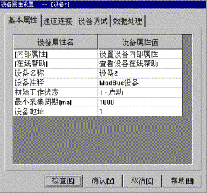 - SvrSetProperty()函數(shù)功能:設置設備屬性列表,主程序在調(diào)通道連接和設備調(diào)試屬性頁之前運行,系統(tǒng)獲取基本屬性頁中的數(shù)據(jù)。在SvrGetProperty()中設置的通道(每一行),必須保存。