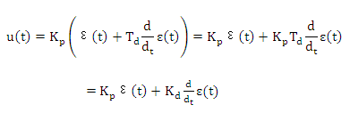 積分控制的動態性能不好,而微分項恰好可以彌補這點。微分控制器的輸出和誤差信號的微分成正比,即  ,所以PD控制器的輸出有: