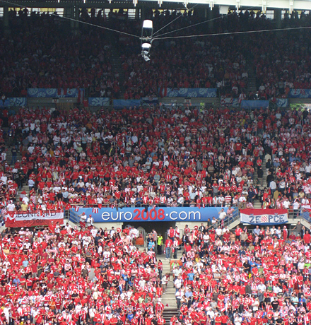 [2008 年 07月 23日,德國] 2008 年 6 月 7 日至 29 日,16 支歐洲頂級足球隊在奧地利和瑞士聯合舉辦的歐洲足球錦標賽(UEFA European Championship)上集結,在賽場上展開角逐。此次頂級賽事向全球 180 個國家進行現場直播。安裝于賽場上的 SpiderCam® 攝像機器人可全程實時記錄賽事畫面。總共有 4 個歐洲杯足球場安裝了這種尖端的攝像系統:維也納的 Ernst Happel 體育場,薩爾茨堡的 Wals-Siezenheim 體育場,巴塞爾的 St. Jakob 公園球場,以及日內瓦的 Stade de Genève 球場。所有這些攝像系統都由 Beckhoff 基于 PC 的控制系統控制。