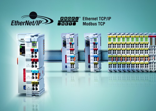 對于在工業(yè)以太網系統中使用,還有可支持 PROFINET(BK9053)和 Ethernet(BK9050)的“緊湊型”總線耦合器。除了 Ethernet TCP/IP 協議之外,BK9050 還可支持 Modbus TCP 協議以及根據 EtherCAT 自動化協議(EAP)進行的循環(huán)數據交換。