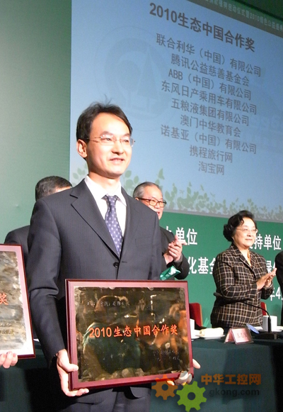 北京,2011年5月4日——由中國綠化基金會主辦,聯合國環境規劃署、全國綠化委員會、國家林業局等單位協辦日前在此間舉辦了“2010生態中國年度頒獎盛典”, 旨在表彰為國家生態公益建設做出積極貢獻的先進人物、先進企業、單位與城市。ABB(中國)有限公司榮獲“2010生態中國合作獎”。