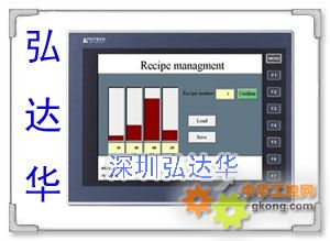 PWS6A00T-N顯示器類型 TFT LCD 顯示器色彩 64K 色 顯示器尺寸 10.4 吋 (對角線);顯示范圍 213.2X160.4 公厘 像素數 640x480,表示 8x8 大小的字符串可以顯示的數目為 80x60 個。 背光源 CCFT;在 25 oC 下使用壽命為 50,000 個小時 觸控屏幕 數值 按鍵 1 個「清單」鍵和 7 個使用者定義的「功能」鍵 (F1 ... F7) 按鍵施力與使用壽命 350±50gf 操作力,按壓次數可超過 1 百萬次。 輸入電源 24VDC±15%;低于 30W Flash ROM 8MB RAM 512 KB CPU 32 位 RISC 電池供電內存 512 KB RTC 有 資料/配方 512 KB 數據儲存 (CF 卡) 有 COM1 9 針腳母接頭: RS232/RS485 COM2 25 針腳母接頭: RS232/RS422/RS485 COM3 9 針腳母接頭:RS422/RS485