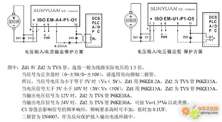 二、電壓輸入,電流與電壓輸出型隔離放大器變送器IC保護(hù)方案