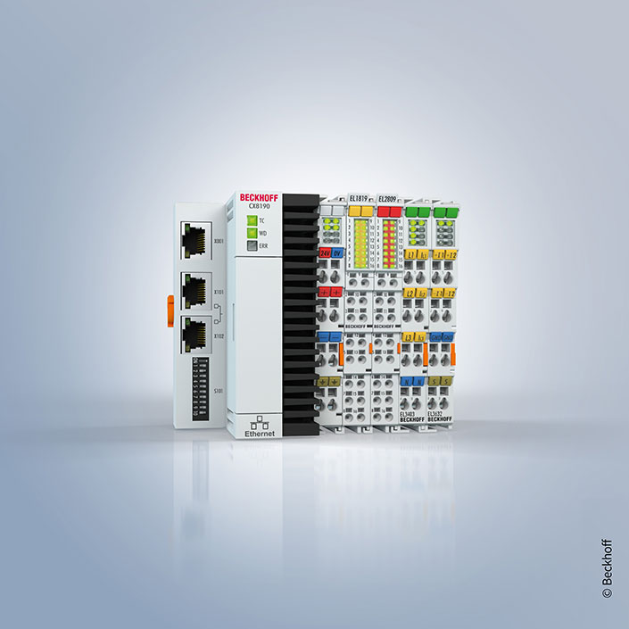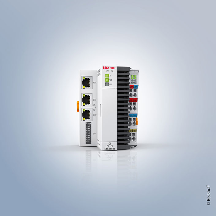 CX8190 控制器具有 2 個以太網口,其中一個端口由兩個 RJ45 網口組成。它支持實時以太網、ADS UDP/TCP 或 EAP(EtherCAT?自動化協議)等協議。可根據需要連接 K-bus 或 E-bus 端子模塊;CX8190 在啟動時自動檢測所連接的?I/O?系統類型??刂葡到y編程采用?TwinCAT?3 通過現場總線接口或額外的以太網接口完成。TwinCAT?3 許可證必須通過 TwinCAT?3 價格表進行訂購。