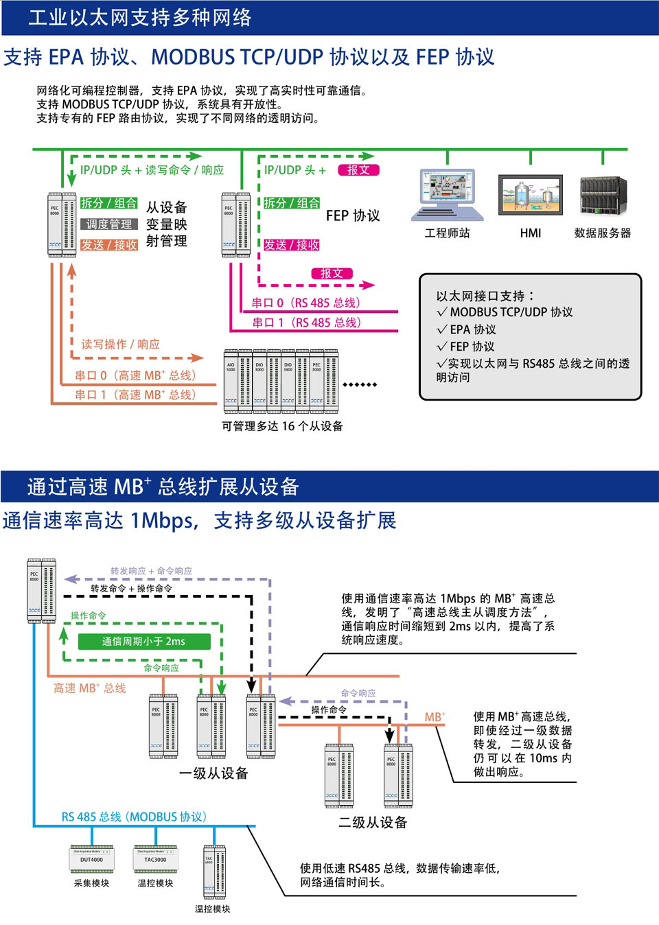產品簡介:PEC系列網絡化可編程控制器,是擁有完全自主知識產權的新一代小體積、緊湊型可編程控制器。該控制器具有結構緊湊、功能全面、使用方便、性能穩定等特點,針對國內工控領域應用需求,強化了網絡通信、從設備管理、分布式控制、控制參數自整定等功能,形成了高性價比的系列產品。