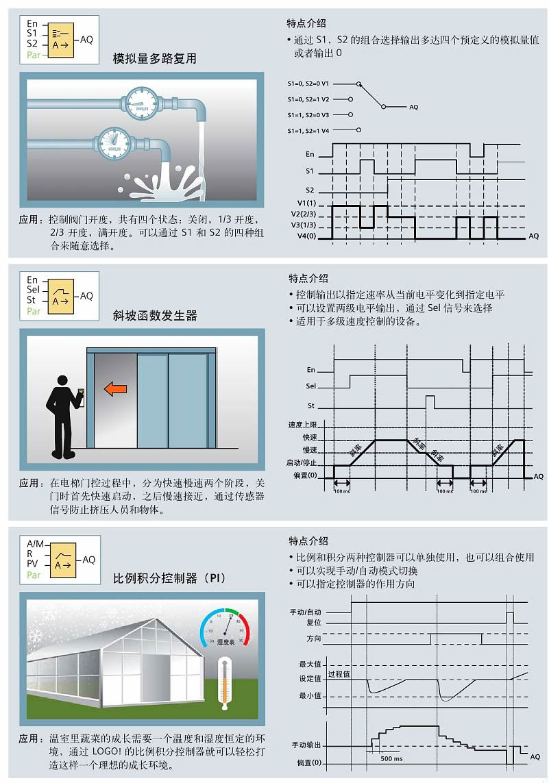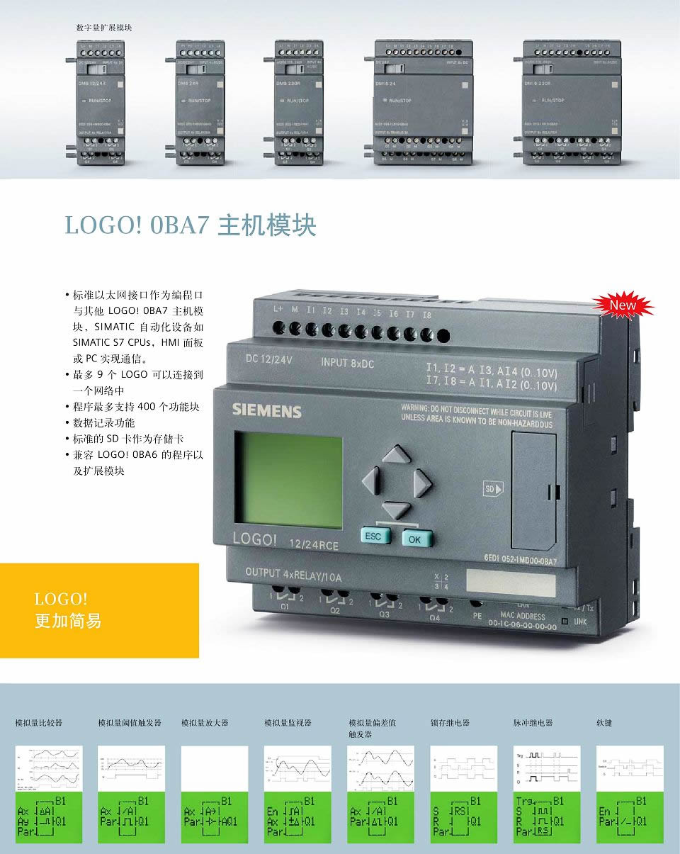 LOGO! 智能邏輯控制器填補了繼電器與PLC之間的技術空間,已發展成為模塊化的標準組件產品。通過集成的8種基本功能和30多種特殊功能,LOGO! 可以代替數以百計的開關設備,從時間繼電器一直到接觸器。LOGO! 有很好的抗振性和很強的電磁兼容性(EMC),完全符合工業標準,能夠應用于各種氣候條件。