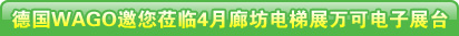 | 2010中國國際電梯展將于4月21-24日在廊坊國際會展中心舉行。屆時,德國WAGO公司也將盛裝出席,推出其用于電梯行業的經典產品及新品,歡迎廣大新老客戶蒞臨參觀。展位號:D館451 |