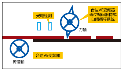 通過對設(shè)備控制要求的分析,這是比較典型的飛剪裁切功能應用,而臺達20PM已內(nèi)置飛剪功能,可采用以DVP-20PM為控制核心的臺達整體解決方案完成對切刀控制,實現(xiàn)設(shè)備控制要求。