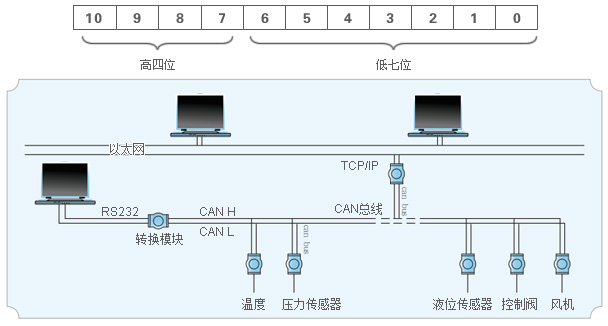 K85系列CAN總線模塊在軟件方面符合CAN的標準協議。模塊的通信協議使用CAN2.0B標準幀協議(兼容CAN2.0A),標識符是11位。高四位指定為功能碼,低7位為節點地址,統稱為COB-ID(Communication Object Identifier),根據實際需求,可以設置模塊的多種工作模式,如主動上傳模式,或者同步模式等,能夠滿足不同現場的要求。