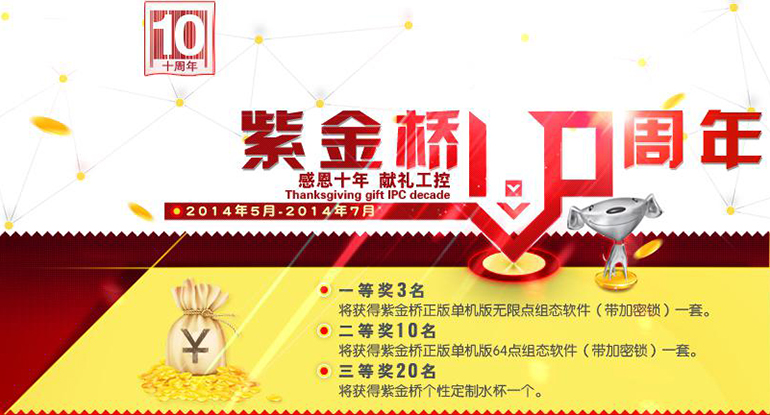 | 二:活動時間:2014年5月-2014年7月 三:獎項設置 1:一等獎3名:將獲得紫金橋正版單機版無限點組態軟件(帶加密鎖)一套。 2:二等獎10名:將獲得紫金橋正版單機版64點組態軟件(帶加密鎖)一套。 3:三等獎20名:將獲得紫金橋個性定制水杯一個。 歡迎關注紫金橋官方微信平臺免費領取軟授權 |
